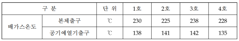 - 평균 입열량 : 1호기 9,563,2호기 9,581,3호기 9,587,4호기 9,619[kcal/N㎥]